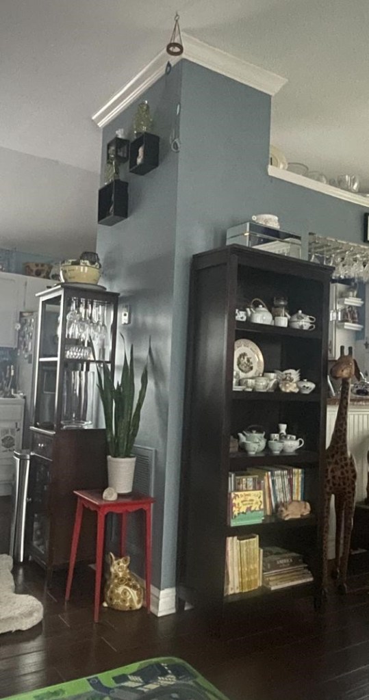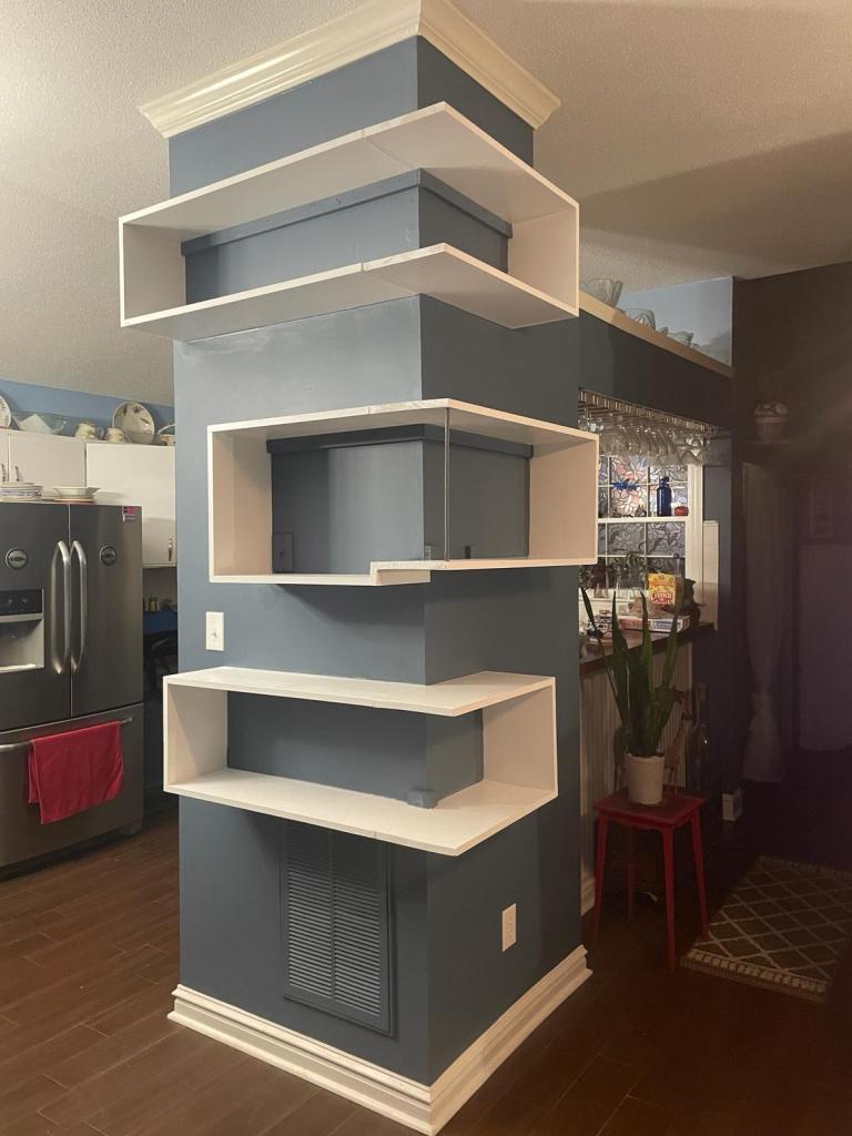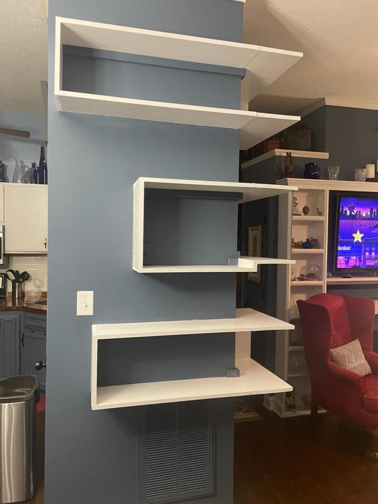 Custom floating shelves built – front view